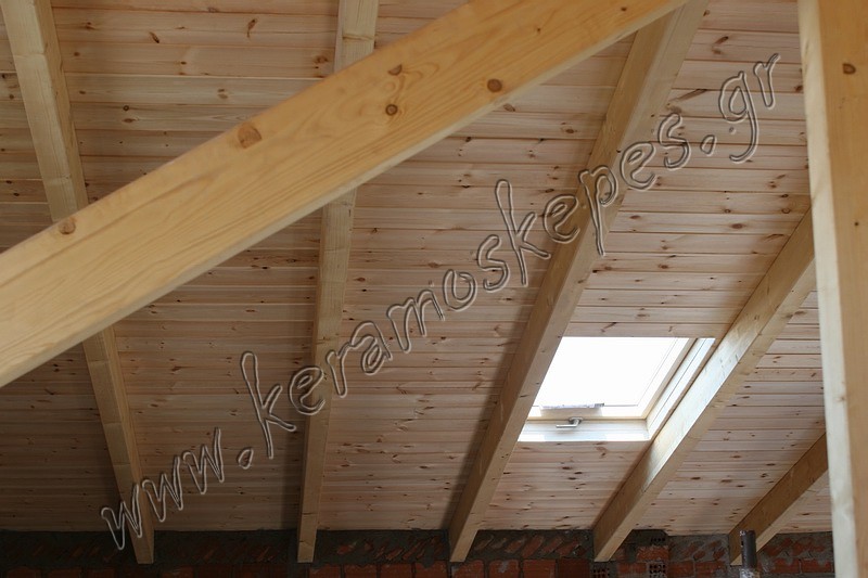 Ξύλινη στέγη με σύνθετη ξυλεία και ραμποτέ