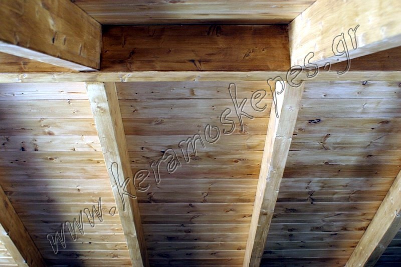 Στέγη με σύνθετη ξυλεία χρωματισμένη και ραμποτέ