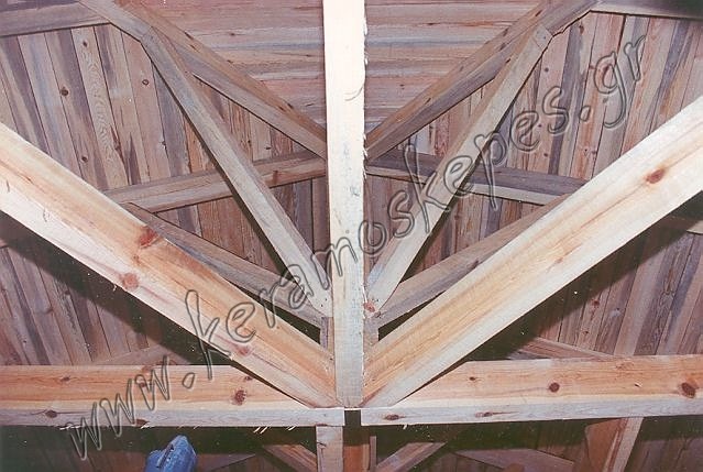 Στέγη με ζευκτά ξυλεία και τάβλα εγχώρια