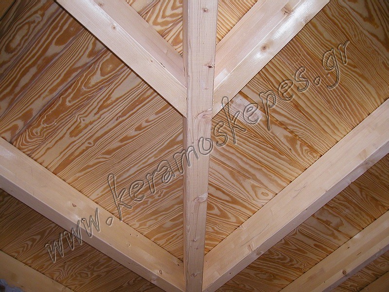 Ξύλινη στέγη με σύνθετη ξυλεία και ραμποτέ