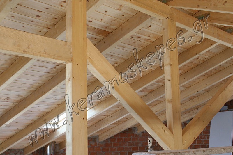 Ξύλινη στέγη με σύνθετη ξυλεία και ραμποτέ